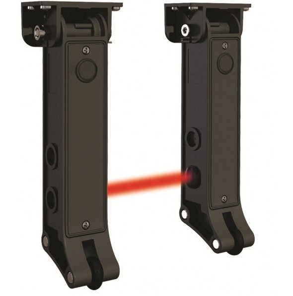 Tento kompaktní pár fotočlánků v samostabilizačních konzolách je napájen z 12/24 V AC/DC, má dosah přibližně 10 m a je vybaven reléovým výstupem schopným spínat 1 A při 24 Vac; díky krytí IP54 je vhodný pro použití v běžných venkovních podmínkách.